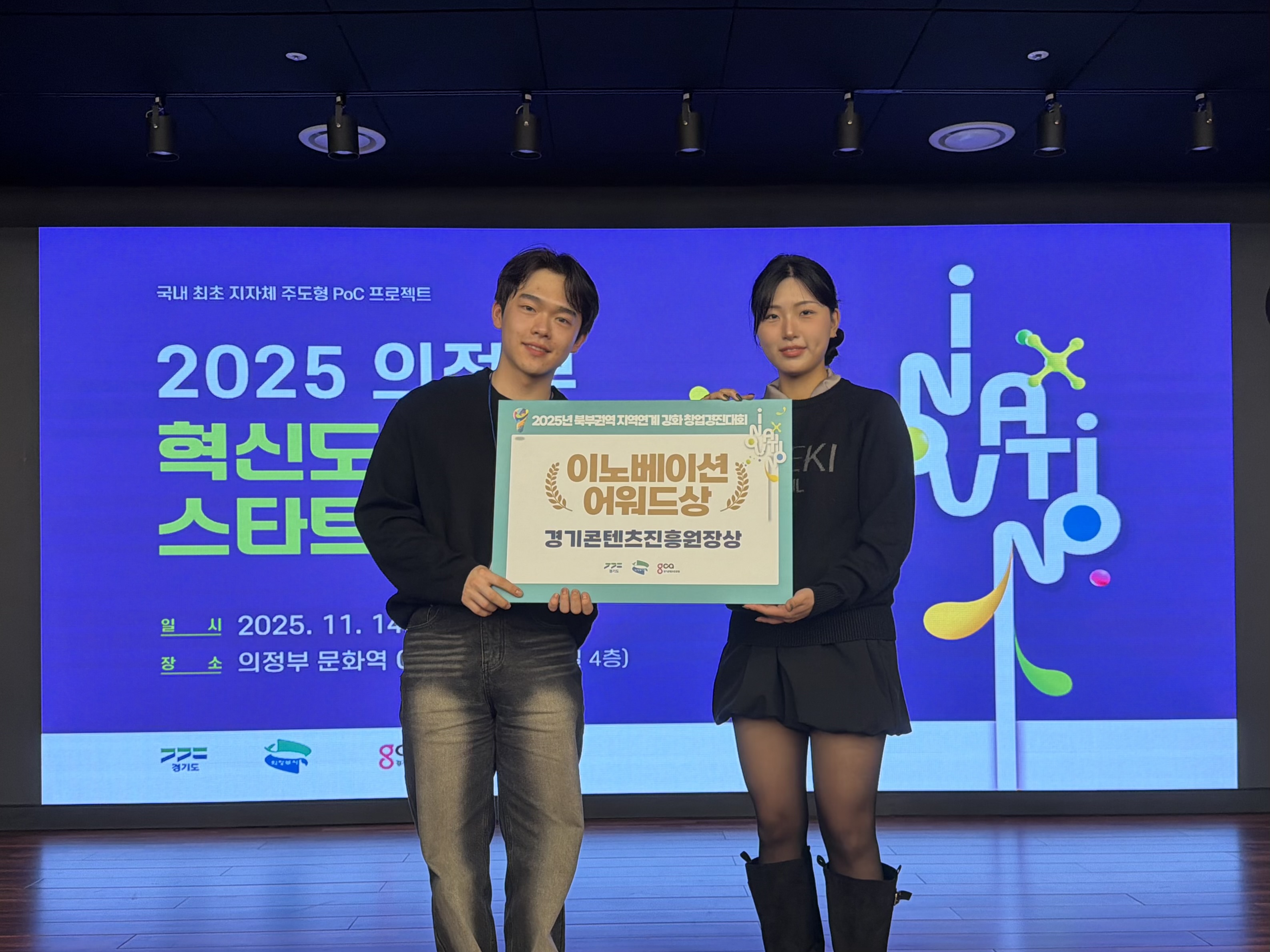 20251114() 의정부문화역 이음(모듬홀)에서 경기콘텐츠진흥원이 주최한 ‘2025 북부권역 지역연계 강화 지원 학생 부문 창업경진대회본선 발표 및 시상식이 진행되었다.