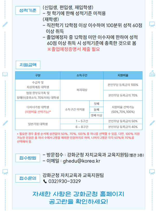 [교외장학] 2025년 하반기 강화군 대학생 등록금 지원 사업 안내